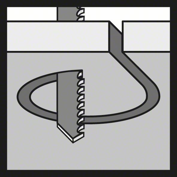 Areas of application: Hardwood, laminated panels/HPL (1.5-15 mm), plywood, especially for curve cuts, no tear