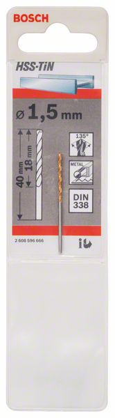 Robert Bosch Power Tools GmbH Metal drill bits HSS-TiN, DIN 338. For rotary drills/drivers