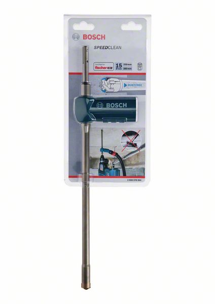 The SDS plus-9 Speed Clean Drill Bit allows for dustless drilling. While working, the built-in vacuum attachment pulls dust though extraction holes in the drill bit, allowing optimum material removal without additional steps. This technology results in a clean, dust-free working environment. The bit is intended for use on masonry, concrete and reinforced concrete. The SDS plus-9 Speed Clean Drill Bit is available as 4-cutter for bigger diameters and as 2-cutter for smaller diameters and features an accurate centring tip. To achieve accurate results, the visibility of the wear mark indicates if the diameter of the hole is still in tolerance for metal anchor setting. It is made in Germany.