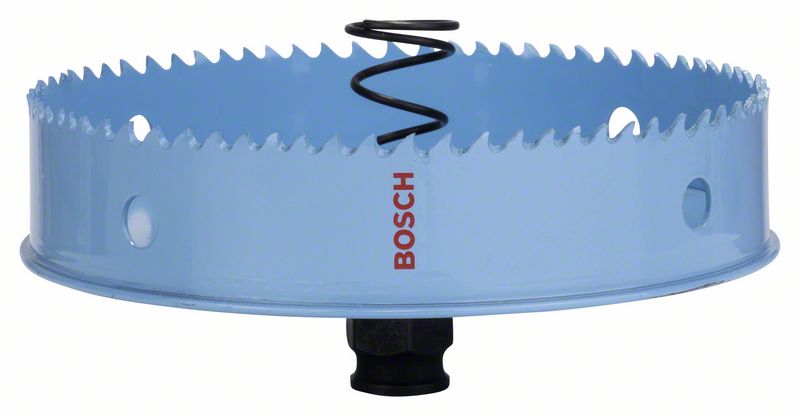 The Special for Sheet Metal Hole Saw offers durability while cutting holes through metal. Made of bi-metal HSS (high-speed steel) containing 8% cobalt alloy, this hole saw has less risk of tooth breakage and higher heat resistance for extreme resilience and a long product lifetime. The configuration of the teeth on the Vario tooth strip is ideal for sawing through thin material with reduced wear on the cutting edge. Furthermore, a depth-stop feature prevents breakthroughs to protect the work surface. Use this hole saw when cutting through sheet metal with a thickness of less than 5 mm, such as mild steel and stainless steel. The Special for Sheet Metal Hole Saw features Bosch’s unique power-change adapter with the fastest arbour system on the market. It allows for locking and unlocking the hole saw and pilot drills in one click.