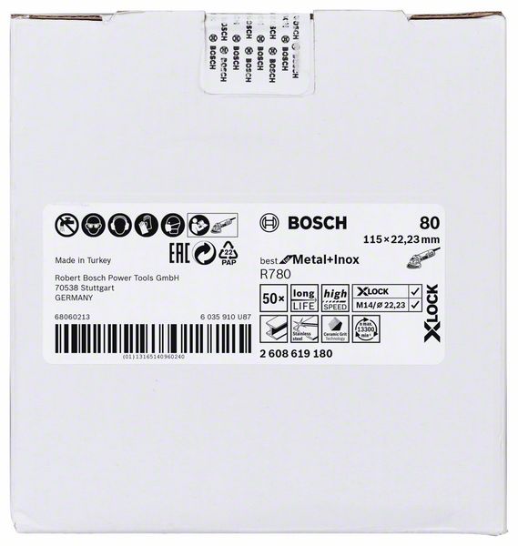Robert Bosch Power Tools GmbH X-LOCK Fibre Disc, 115mm, G80, star hole, R780 Best for Metal + Inox. For small angle grinders