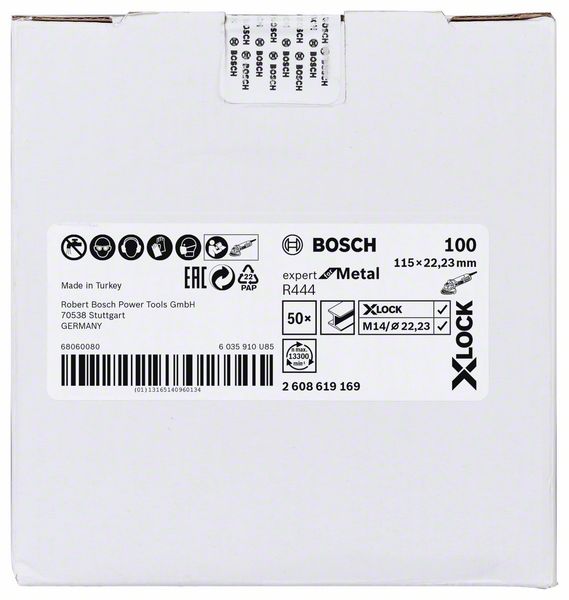 Robert Bosch Power Tools GmbH X-LOCK Fibre sanding discs, Ø115mm, G 100, R444, Expert for Metal, 1pcs. For small angle grinders