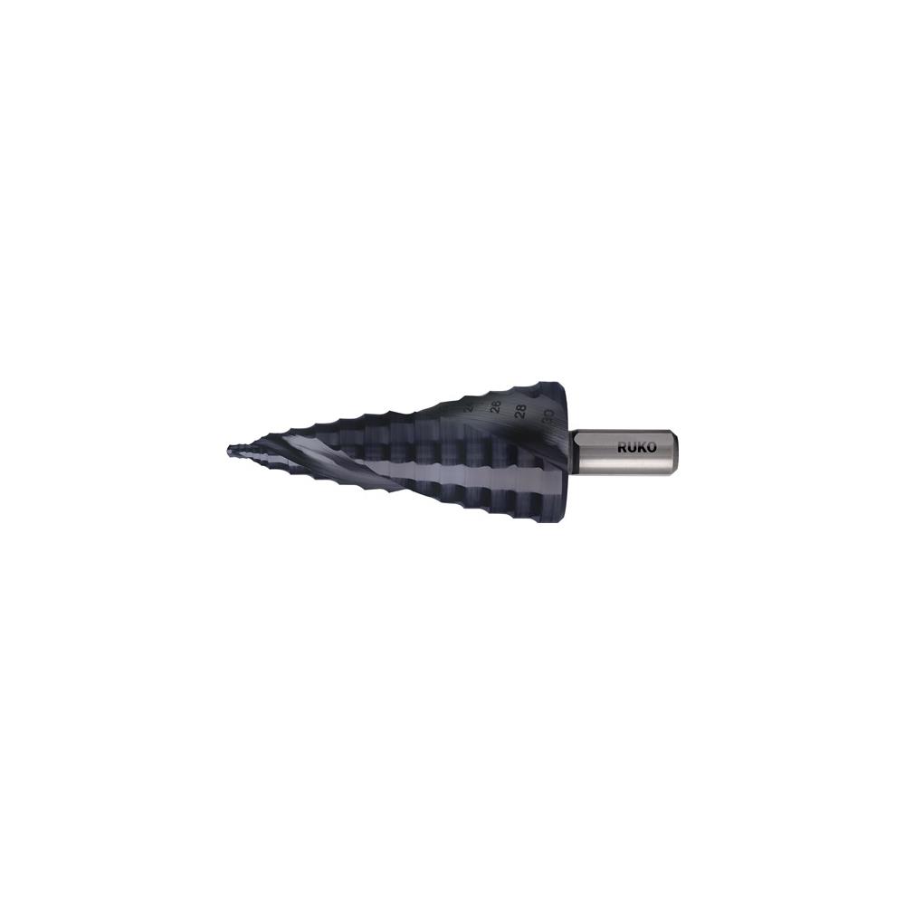 RUKO Step drill ULTIMATECUT drill. range 8-30 mm HSS RUnaTEC spiral grooved no. of cutters 2 no. of steps 12