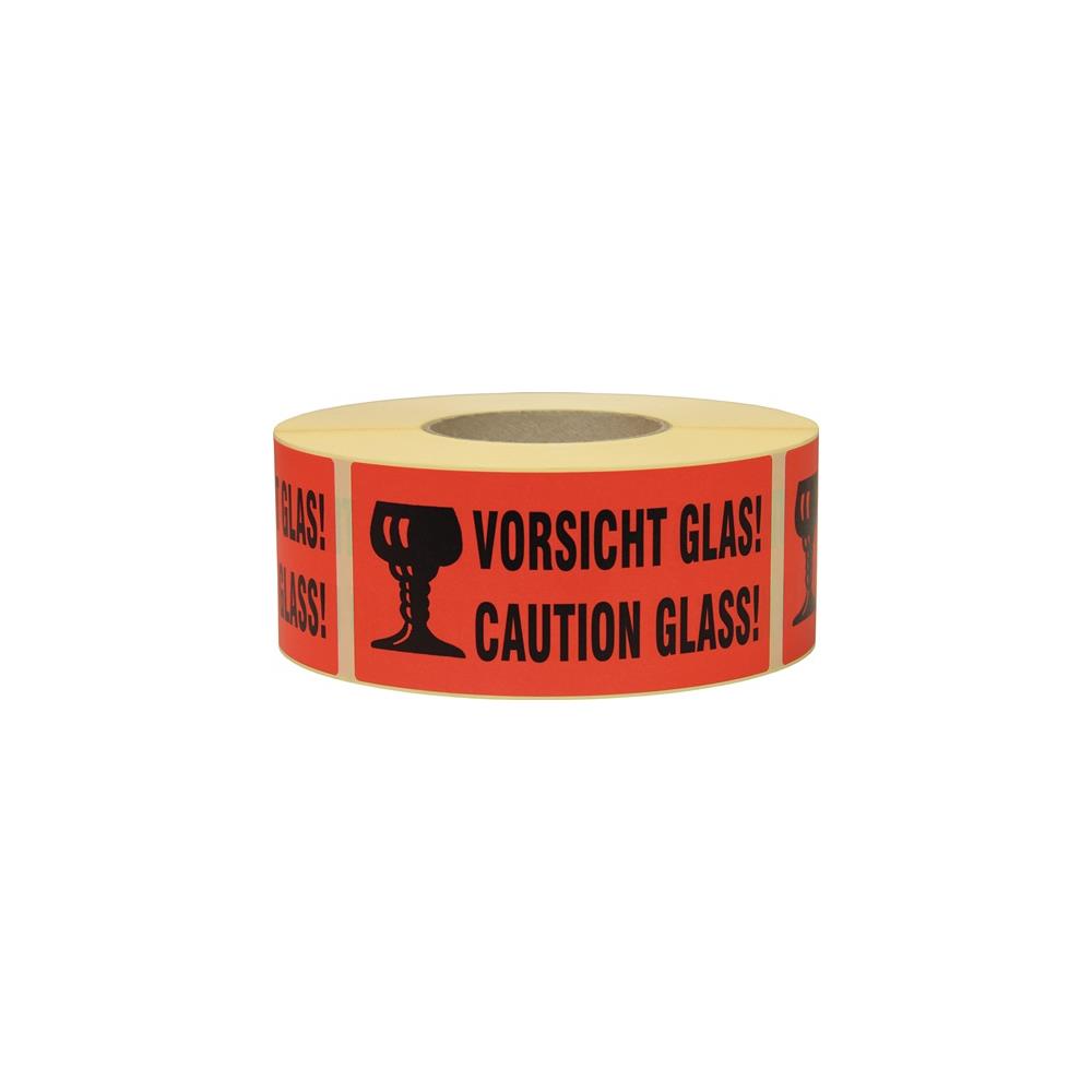 TRANSPAK Information label caution Glass length 145 mm, width 70 mm red
