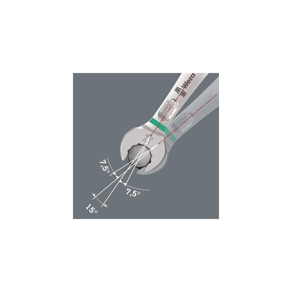 – Repeatedly rotating the spanner by 180° around the longitudinal axis provides 4 application options and the nuts and screws can be gripped every 15° Further technical information:
